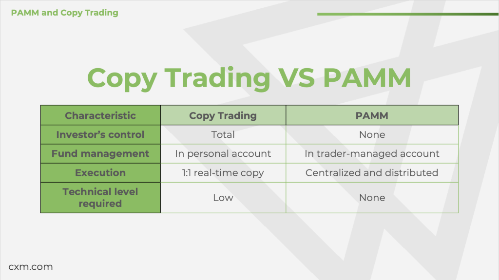 Both models -PAMM and copy trading- offer ways to delegate management, but they work differently and are designed for different types of investors.