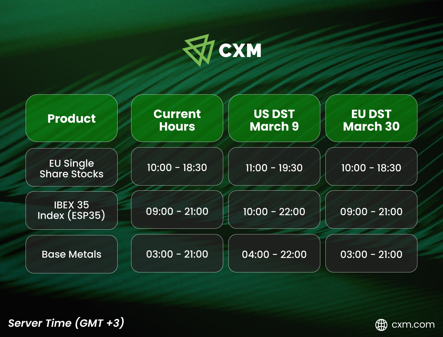 ตั้งแต่วันที่นี้เป็นต้นไป ตารางการซื้อขายและกิจกรรมที่เกี่ยวข้องทั้งหมดจะอิงตามเวลาของเซิร์ฟเวอร์ที่อัปเดต